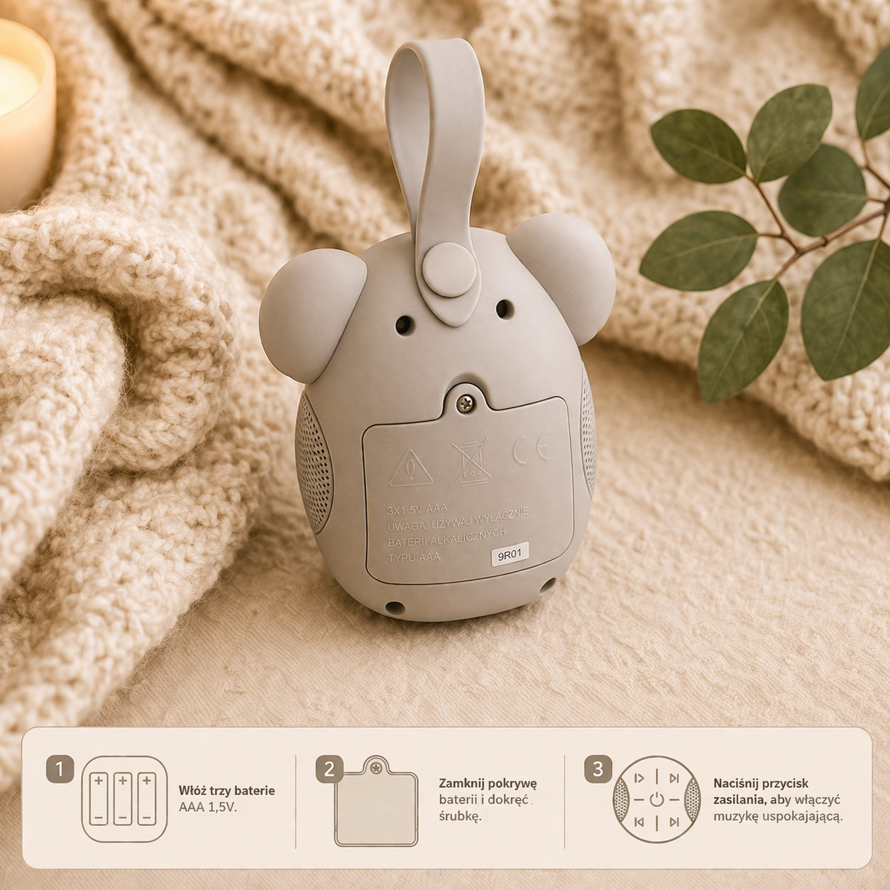 Koaluś pomaga stworzyć ten sam spokojny rytuał snu niezależnie od miejsca — w łóżeczku, wózku czy w podróży.